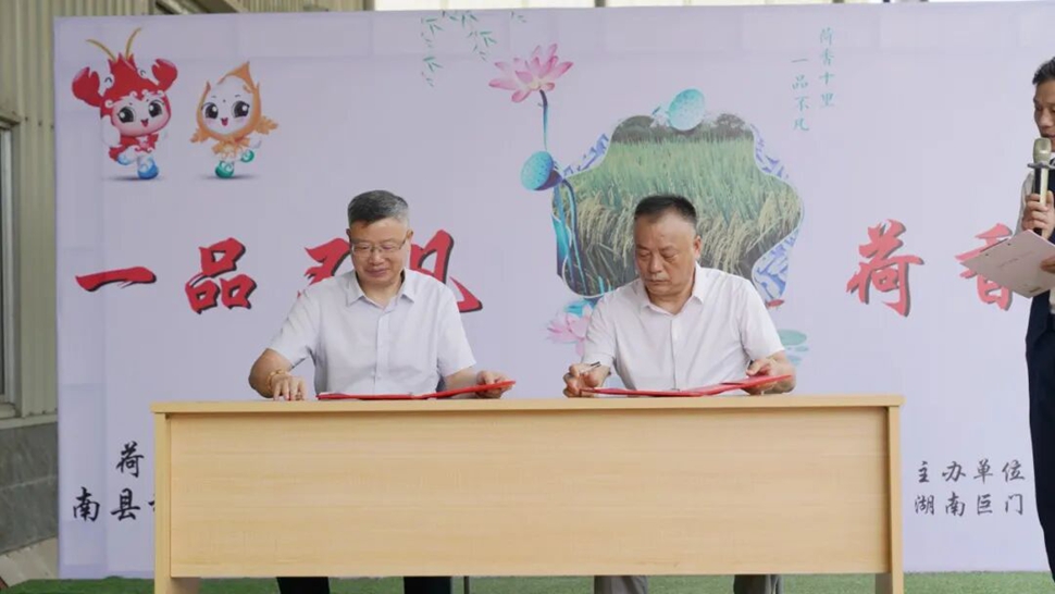 活动中,岳麓山种业创新中心与溢香园正式签约,标志着产业之间的深度联合迈入新阶段。湖南溢香园粮油有限公司董事长沈宏俊先生在致辞中表示:“南县稻虾米的成功,是生态农业与品牌、市场互相奔赴的成果。我们希望通过合作,进一步打通从田间到餐桌的全链条,让湖南大米走向更广阔的市场。”