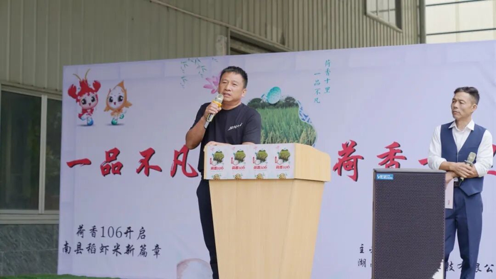 湖南杂交水稻研究中心研究员张世辉先生对“荷香106”品种的特性及栽培技术进行了深入讲解,强调该品种在抗逆性、米质香气等方面的优势。