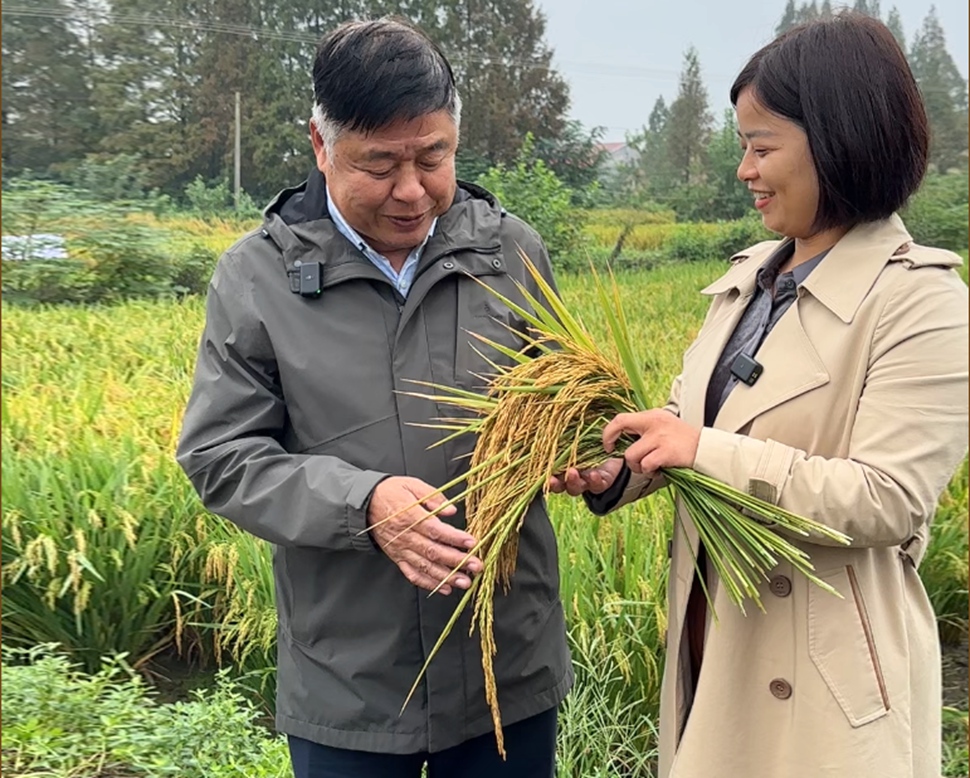 湖南杂交水稻研究中心研究员张世辉老师表示:“现场看得出这水稻的结实率高、抗倒伏性强、株高合适。种植时要注重栽培技术的配套,比如通过晒田等物理措施与叶面肥追施相结合,实现协同增效。”