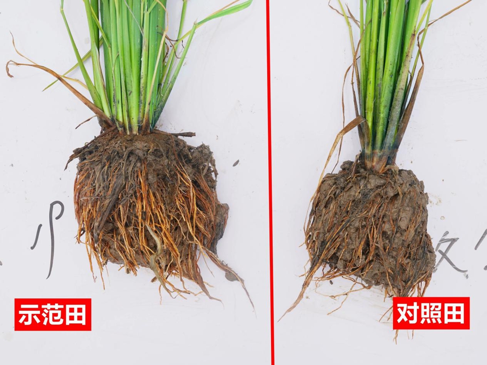 示范田水稻有更发达的根系网络,使示范田水稻在抽穗期能更高效地吸收土壤中的氮、磷、钾及中微量元素,满足幼穗分化(决定穗粒数的关键阶段)对养分的集中需求。